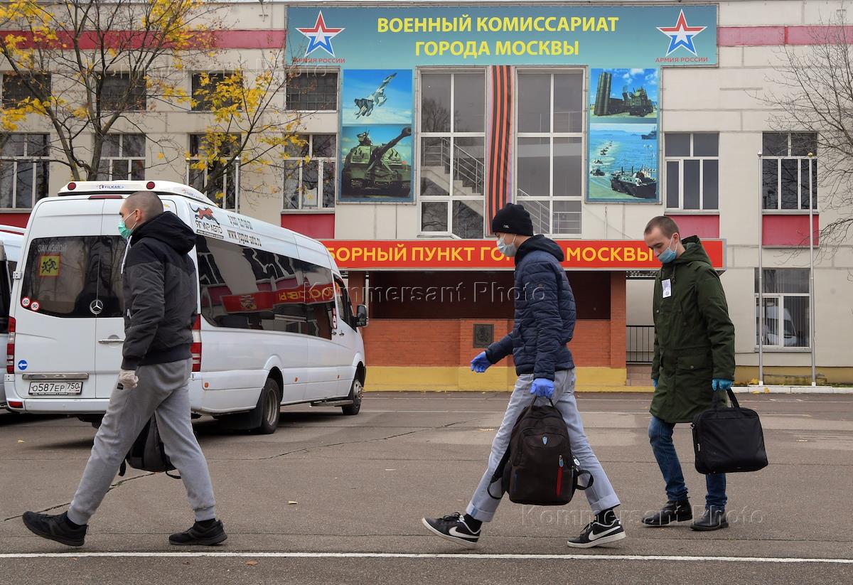 Осенняя призывная кампания 2020 года. Жанровая фотография. Сотрудники Сборного призывного пункта военного комиссариата города Москвы перед отправкой призывников к местам прохождения военной службы.