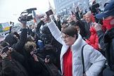 Пресс-конференция депутата Совета депутатов Тимирязевского района Юлии Галяминой, обвиняемой в неоднократном нарушении правил проведения митингов и пикетов, у здания Тверского районного суда. Сотрудники полиции во время пресс-конференции.