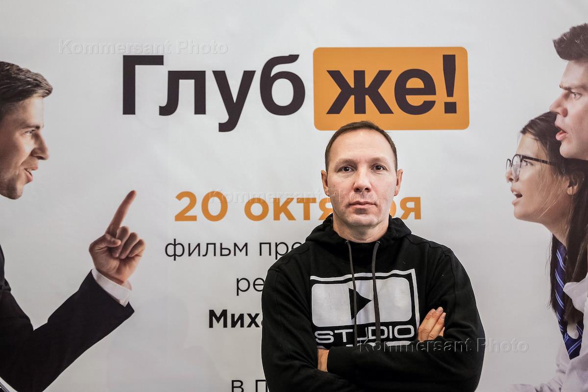 Premiere of the film "Deeper!" directed by Mikhail Segal at the Pobeda cinema. Director Mikhail Segal at the premiere.