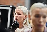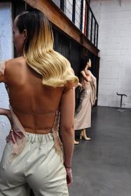 Неделя моды Mercedes-Benz Fashion Week Russia. Показ коллекции марки Otocyon дизанейра Леси Волчок-Русакович на еvent-площадке "Лофт "Надежда"/ Трехгорная Мануфактура". Модели в зоне бекстейдж перед началом показа.