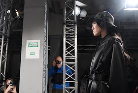 Неделя моды Mercedes-Benz Fashion Week Russia. Показ коллекции марки Otocyon дизанейра Леси Волчок-Русакович на еvent-площадке "Лофт "Надежда"/ Трехгорная Мануфактура". Жанровая фотография.