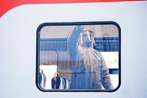 Меры предосторожности и профилактики из-за угрозы распространения коронавирусной инфекции COVID-19. Комплекс противоэпидемических мероприятий в пригородных поездах. Жанровая фотография. Электричка во время движения по станции.