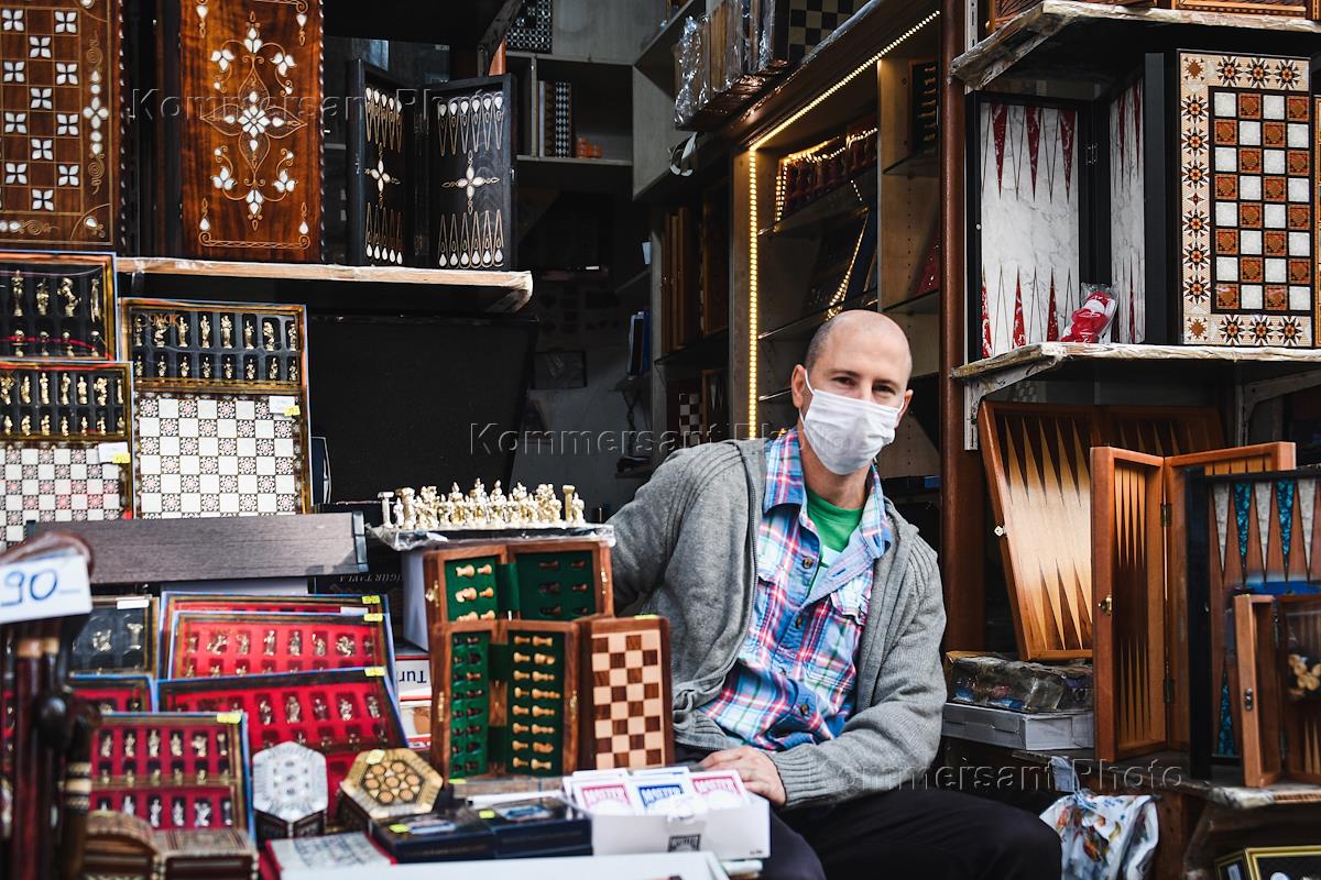 Виды Стамбула. Жанровая фотография. Прохожие в медицинских масках на улице.