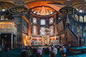 Виды Стамбула. Жанровая фотография. Интерьеры собора Святой Софии — Премудрости Божией, превращенного в Большую мечеть Айя-София.