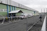 Очередь из машин скорой помощи возле временного госпиталя в 5 корпусе "Ленэкспо"
