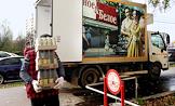 Жанровая фотография. Сотрудники магазина "Красное и белое" во время разгрузки автомобиля.