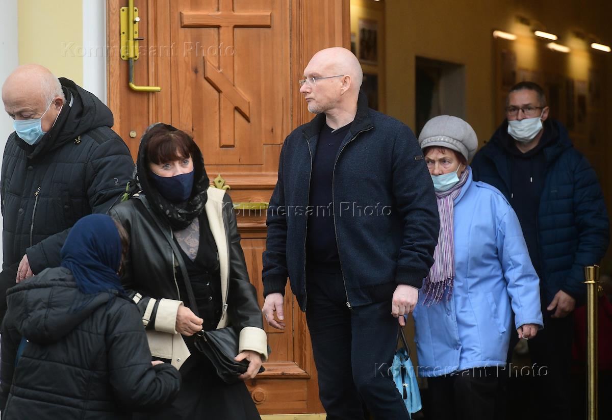 Церемония отпевания бизнесмена и муниципального депутата Выборгского района Александра Петрова, убитого 24 октября, в Спасо-Преображенском соборе. Исполняющий обязанности главы Выборгского района Ильдар Гилязов (справа) во время церемонии.