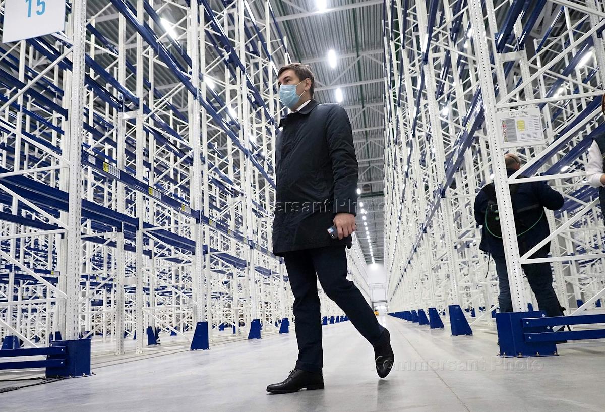 Церемония открытия распределительного центра сети гипермаркетов "Лента" на территории индустриального парка "Ям-Ижора". Генеральный директор компании "Лента" Владимир Сорокин во время церемонии.