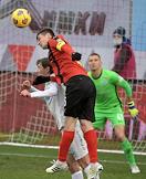 Российская Премьер-Лига (РПЛ). Тинькофф - Чемпионат России по футболу 2020/2021. 13-й тур. Матч между командами "Химки"(Химки) и "Зенит" (Санкт-Петербург) на стадионе "Арена Химки". Игрок команды "Химки" Мохамед Конате (слева) и игрок команды "Зенит" Дмитрий Чистяков (справа) во время матча.