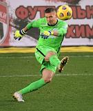 Российская Премьер-Лига (РПЛ). Тинькофф - Чемпионат России по футболу 2020/2021. 13-й тур. Матч между командами "Химки"(Химки) и "Зенит" (Санкт-Петербург) на стадионе "Арена Химки". Вратарь команды "Химки" Илья Лантратов во время матча.