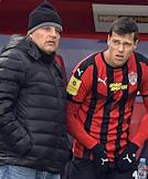 Российская Премьер-Лига (РПЛ). Тинькофф - Чемпионат России по футболу 2020/2021. 13-й тур. Матч между командами "Химки"(Химки) и "Зенит" (Санкт-Петербург) на стадионе "Арена Химки". Главный тренер команды "Химки" Игорь Черевченко (слева) во время матча.