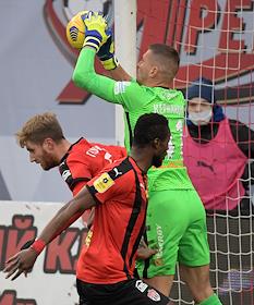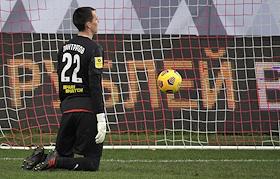 Российская Премьер-Лига (РПЛ). Тинькофф - Чемпионат России по футболу 2020/2021. 13-й тур. Матч между командами "Химки"(Химки) и "Зенит" (Санкт-Петербург) на стадионе "Арена Химки". Вратарь команды "Химки" Илья Лантратов во время матча.