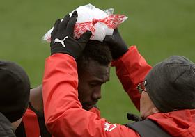Российская Премьер-Лига (РПЛ). Тинькофф - Чемпионат России по футболу 2020/2021. 13-й тур. Матч между командами "Химки"(Химки) и "Зенит" (Санкт-Петербург) на стадионе "Арена Химки". Игрок команды "Химки" Брайан Идову во время матча.