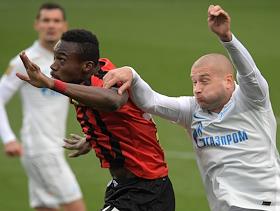 Российская Премьер-Лига (РПЛ). Тинькофф - Чемпионат России по футболу 2020/2021. 13-й тур. Матч между командами "Химки"(Химки) и "Зенит" (Санкт-Петербург) на стадионе "Арена Химки". Игрок команды "Химки" Мохамед Конате (справа) и игрок команды "Зенит" Ярослав Ракицкий (слева) во время матча.