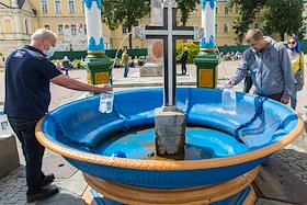 Виды Сергиева Посада. Жанровая фотография. Прихожане набирают воду в источнике в Свято-Троицкой Сергиевой Лавре.