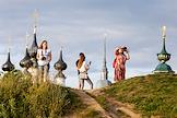 Виды Суздаля. Жанровая фотография. Туристы на фоне куполов церквей.
