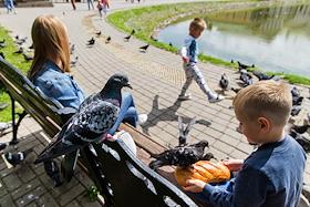 Виды Сергиева Посада. Жанровая фотография. Голуби на берегу Белого пруда.