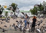 Виды Сергиева Посада. Жанровая фотография. Стаи голубей у стен Свято-Троицкой Сергиевой Лавры. Красногорская площадь.