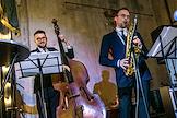 Фестиваль мужского джаза JAZZMAN на сцене творческого пространства "Лофт-особняк Пальма". Участник Денис Кузьмин во время выступления на фестивале.