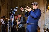 Фестиваль мужского джаза JAZZMAN на сцене творческого пространства "Лофт-особняк Пальма". Исполнители Вова Чё Морале и Sweet Hot Jazz Band во время выступления на фестивале.