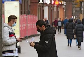 Виды Москвы. Жанровая фотография. Городская жизнь в условиях распространения коронавируса COVID-19. Прохожие в медицинских масках на улицах города.