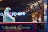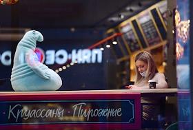 Виды Москвы. Жанровая фотография. Бизнес и городская жизнь в условиях распространения коронавируса COVID-19. Посетительница в кафе.