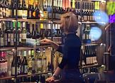 Виды Москвы. Жанровая фотография. Бизнес и городская жизнь в условиях распространения коронавируса COVID-19. Сотрудница винного магазина в медицинской маске.