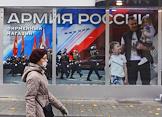 Виды Москвы. Улица Большая Садовая. Жанровая фотография. Городская жизнь в условиях распространения коронавируса COVID-19. Прохожие в медицинских масках на улицах города. Пожилая женщина на фоне витрины фирменного магазина "Армия России".