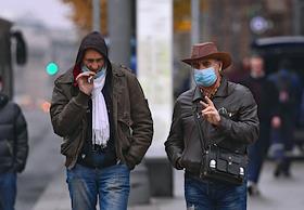 Виды Москвы. Жанровая фотография. Городская жизнь в условиях распространения коронавируса COVID-19. Прохожие в медицинских масках на улицах города.