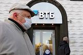 Виды Москвы. Жанровая фотография. Городская жизнь в условиях распространения коронавируса COVID-19. Прохожие в медицинских масках на улицах города. Отделение банка ВТБ.