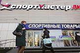 Виды Москвы. Жанровая фотография. Городская жизнь в условиях распространения коронавируса COVID-19. Прохожие в медицинских масках на улицах города. Магазин "Спорт мастер дисконт".