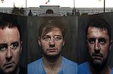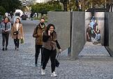 Виды Кишинева. Жанровая фотография. Фотовыставка "Загнанные в угол", посвященная врачам, борющимися с Covid-19, фотографа Алекса Иордаке у входа в парк "Валя Трандафирилор".