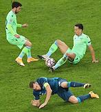 Лига чемпионов УЕФА по футболу. 3 тур. Матч между командами "Зенит" (Россия, Санкт-Петербург) и "Лацио" (Рим, Италия) на стадионе "Газпром Арена". Игрок команды "Лацио" Ведат Мурики (слева) и игрок команды "Зенит" Ярослав Ракицкий (справа) во время матча.