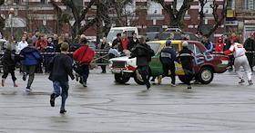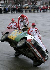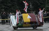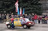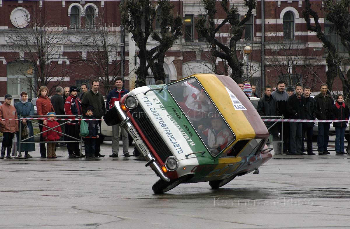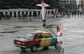 Спортивно-технический аттракцион группы "Автородео" от "Спортавто" на Театральной площади города Саратова, посвященный Дню космонавтики.