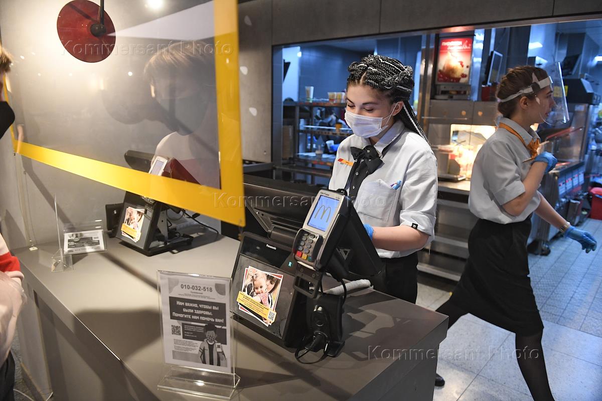 Ограничения в работе ресторанов в условиях распространения коронавируса COVID-19. Жанровая фотография. Работа ресторане быстрого питания "Макдоналдс".