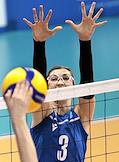 Чемпионат России по волейболу среди женских команд. Суперлига. Матч между командами "Протон" (Саратов) и "Динамо" (Краснодар) в физкульутрно-оздоровительном комплексе (ФОК) "Звездный". Игрок команды "Динамо" Мария Перепелкина во время матча.