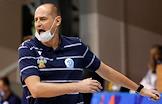 Чемпионат России по волейболу среди женских команд. Суперлига. Матч между командами "Протон" (Саратов) и "Динамо" (Краснодар) в физкульутрно-оздоровительном комплексе (ФОК) "Звездный". Главный тренер команды "Динамо" Константин Ушаков во время матча..