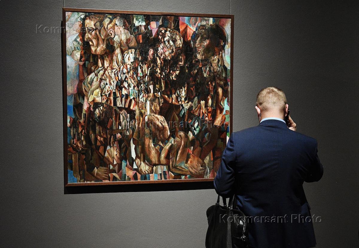Церемония открытия 14-ти залов русского авангарда в постоянной экспозиции Государственной Третьяковской галереи на Крымском валу (Новая Третьяковка) после 2,5 месяцев закрытия из-за протечки крыши, вызванной сильным ливнем. Посетители на выставке.