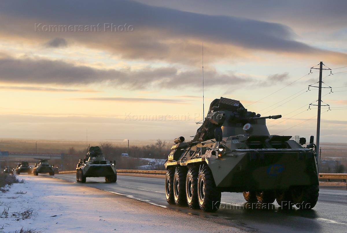 Колонна российских миротворцев, направляющихся в Нагорный Карабах, на трассе в Самарской области.