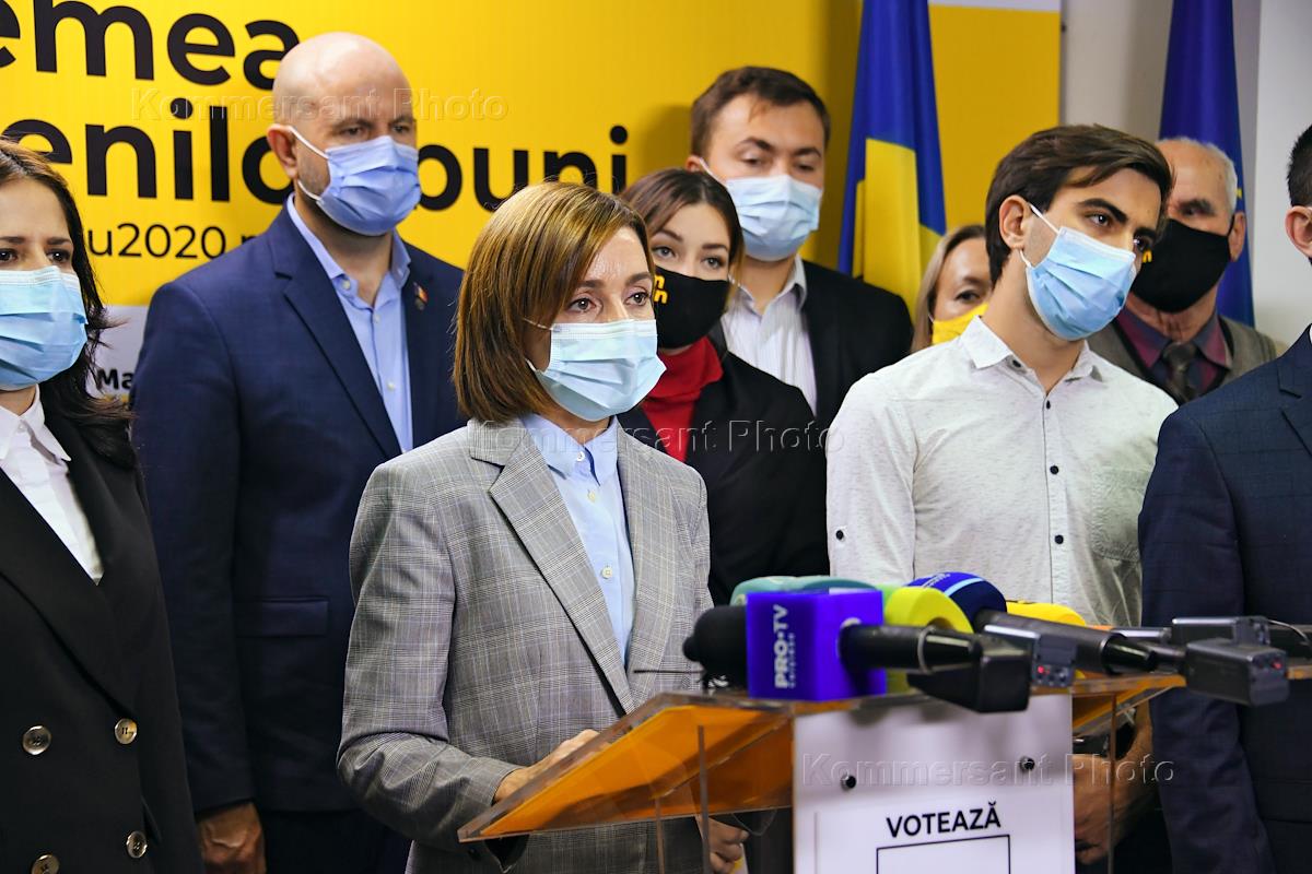 Выборы президента Молдавии. Кандидат на пост президента Молдавии Майя Санду во время пресс-конференции.