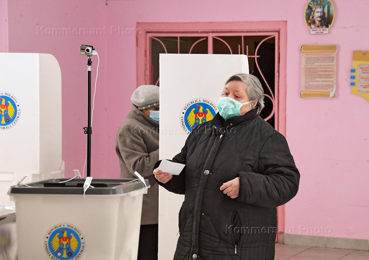 Выборы президента Молдавии. 2-й тур. Избиратели во время голосования на избирательном участке.