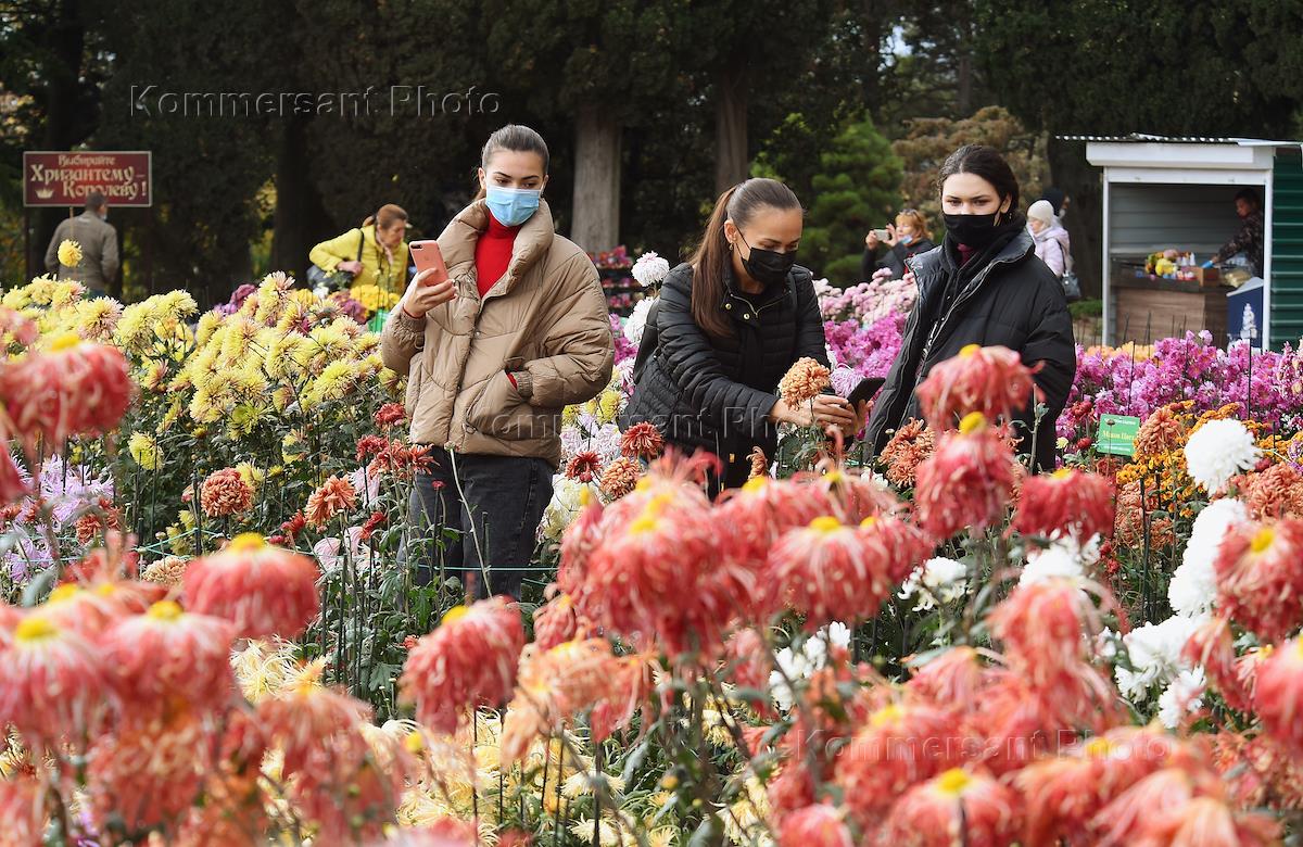 Выставка "Бал хризантем" в Никитском ботаническом саду в условиях распространения коронавируса COVID-19.