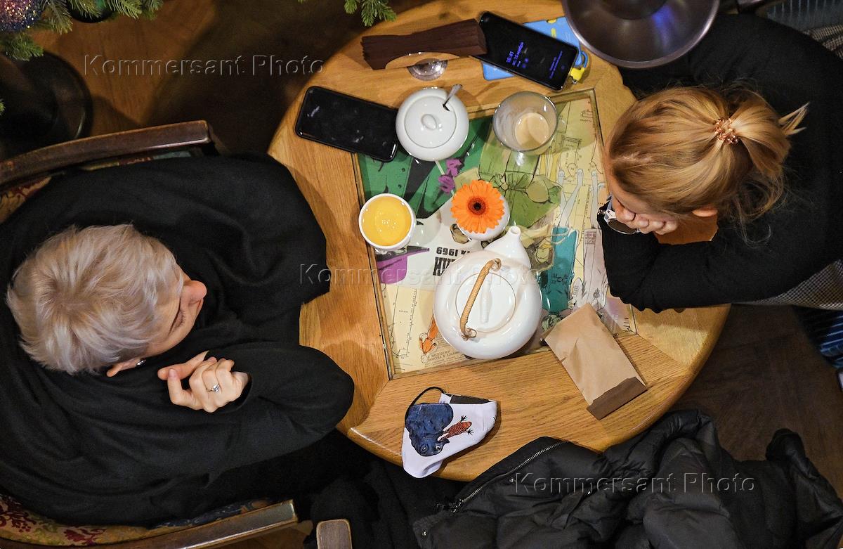 Виды Москвы. Жанровая фотография. Посетители за столиком кафе.