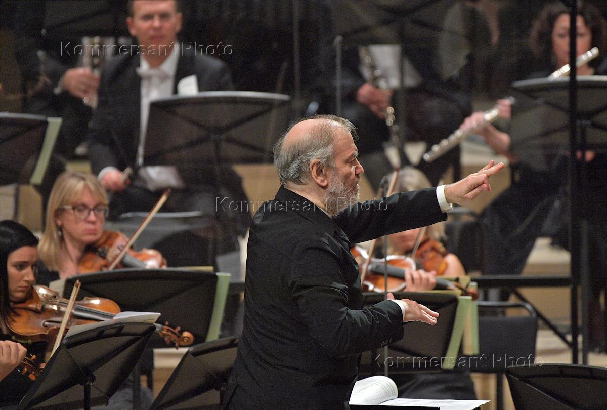 II Международный фестиваль "Зарядье". Концерт Симфонического оркестра Мариинского театра "О любви и ненависти" в концертном зале "Зарядье". Художественный руководитель Мариинского театра, дирижер Валерий Гергиев во время концерта.
