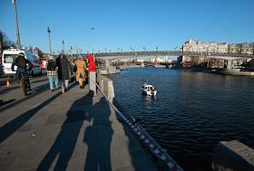 Падение автомобиля в Москву-реку на Пречистенской набережной. Прохожие на месте происшествия.