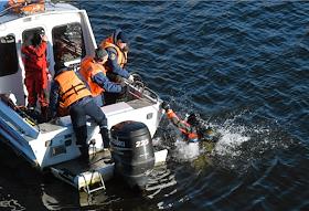 Падение автомобиля в Москву-реку на Пречистенской набережной. Спасательней катера на месте происшествия.