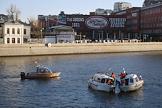 Падение автомобиля в Москву-реку на Пречистенской набережной. Спасательный катер на месте происшествия.