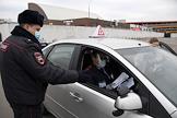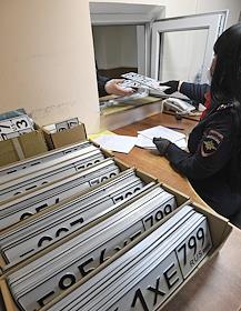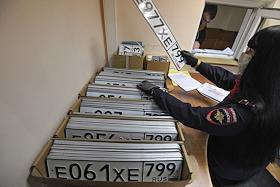 Отделение по экзаменационной работе Межрайонного отдела Государственной инспекции безопасности дорожного движения технического надзора и регистрационно-экзаменационной работы (ОЭР МО ГИБДД ТНРЭР №) 2 ГУ МВД России по городу Москве. Сотрудник полиции во время выдачи государственных номерных знаков автомобиля.