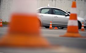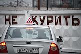 Отделение по экзаменационной работе Межрайонного отдела Государственной инспекции безопасности дорожного движения технического надзора и регистрационно-экзаменационной работы (ОЭР МО ГИБДД ТНРЭР №) 2 ГУ МВД России по городу Москве. Сотрудник полиции во время приема экзамена по вождению на площадке.