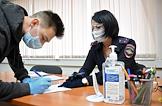 Отделение по экзаменационной работе Межрайонного отдела Государственной инспекции безопасности дорожного движения технического надзора и регистрационно-экзаменационной работы (ОЭР МО ГИБДД ТНРЭР №) 2 ГУ МВД России по городу Москве. Сотрудник полиции во время выдачи документов.